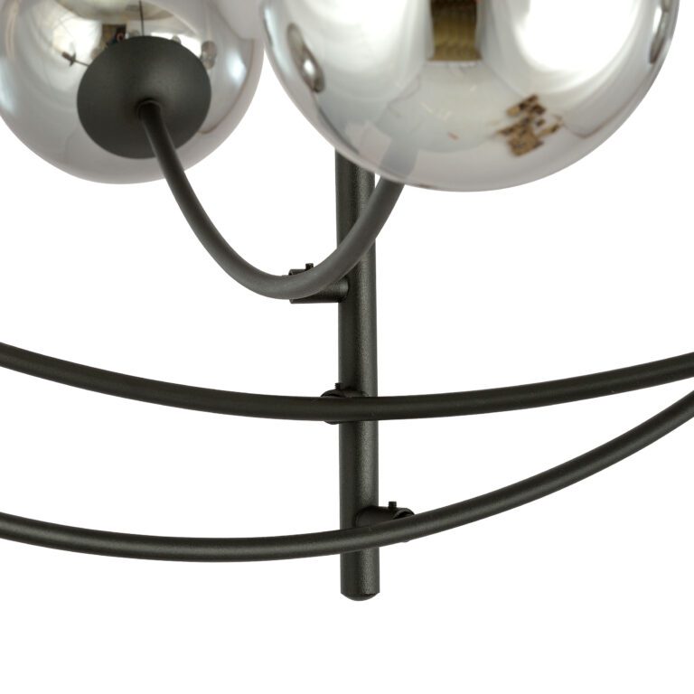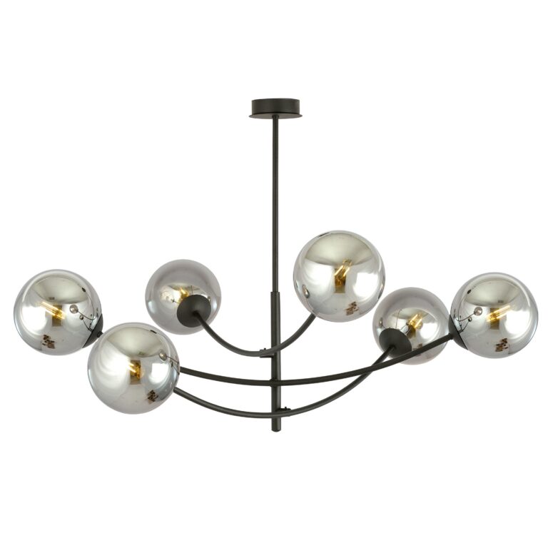 Zjawiskowy design prezentowanego oświetlenia zawarty jest, między innymi, w kloszach, które wykonane zostały z dekoracyjnego, popielatego szkła. Odcień ten przyciemnia nieco światło, dzięki czemu we wnętrzu tworzy się przyjemna atmosfera. Warto tutaj wspomnieć, że metalowa lampa sufitowa Orbis 6 przystosowana została zarówno do żarówek w klasach energetycznych od A++ do E, jak i do oświetlenia LED, które charakteryzuje mniejsze zużycie energii. Wszystkie źródła światła powinny być wyposażone w gwint E14, a ich moc nie może być wyższa niż 40 W.