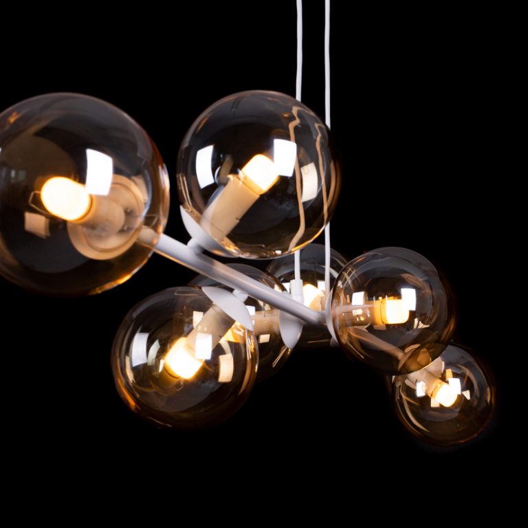 Swoją funkcjonalności nowoczesny żyrandol wiszący Glaz zawdzięcza przede wszystkim ilości kloszy oraz ich pół transparentności. Za ich sprawą światło padające z żarówek jest w stanie swobodnie dotrzeć zarówno poniżej linii lampy, jak i naokoło niej. Dzięki temu całe pomieszczenie zostaje doskonale oświetlone. Co jest szczególnie istotne w przypadku montażu lampy głównej bez żadnych dodatków źródeł światła.