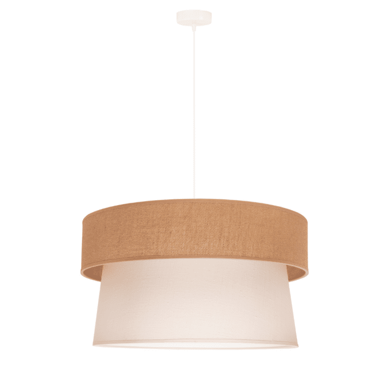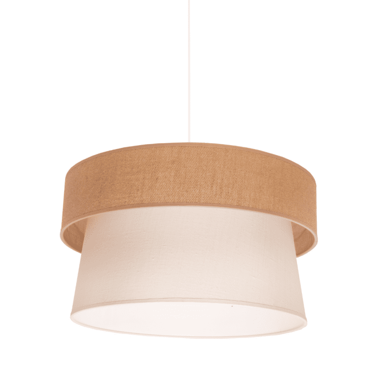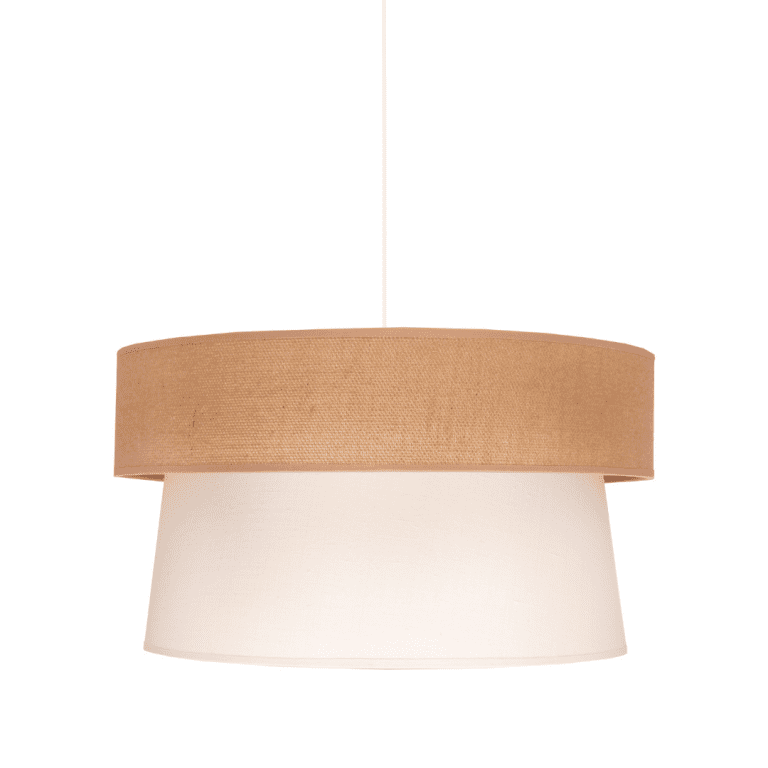 Model ten zdecydowanie jest tak blisko natury, jak to tylko możliwe. Tutaj jest ona niemalże namacalna. Patrząc na lampę wiszącą Etnic, można zobaczyć, jak bardzo nawiązuje do naturalnych struktur roślin. Abażur modelu dostępnego w naszej ofercie został wykonany z surowej, w pełni ekologicznej i biodegradowalnej juty. Drugi z kloszy stworzony został z tkaniny w kolorze écru. Materiał jest w stu procentach naturalny. Lampa wisząca Etnic z juty, która została wyposażona w podwójny abażur, wspaniale oświetli wnętrze salonu, sypialni, a także jadalni. Z pewnością skradnie serca osób blisko związanych z przyrodą.