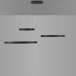 Lampa designerska Bari 3 składa się z trzech metalowych kloszy w formie smukłych pierścieni o różnych średnicach (40, 60 i 80 cm), które zawiesza się na linkach montażowych. Uzupełnieniem jest okrągła podsufitka. Pierścieniowa lampa wisząca Bari 3 w klasycznym kolorze ujmuje minimalizmem i zrównoważoną kompozycją. Zarówno klosze, jak i podsufitka wykonane zostały z wysokiej jakości metalu, zapewniającego trwałość i podkreślając nowoczesny charakter oświetlenia.