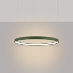 Pod względem estetycznym, minimalistyczna forma zestawiona została z nietypową kolorystyką. Pierścieniowy żyrandol LED Rio ⌀ 78 cm oliwkowy wnosi do aranżacji powiew natury, doskonale prezentuje się z dodatkami o ziemistych barwach, jak chociażby brązy i beże.