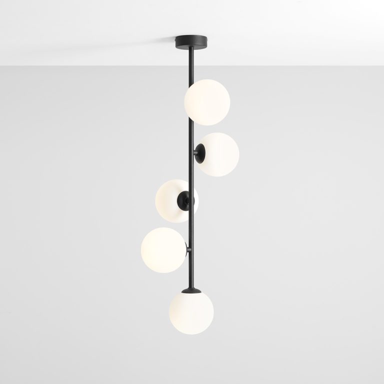 Pionowa lampa sufitowa Braga 5 swoim kształtem nawiązuje do natury. W jej formie można dostrzec kształt kiści winogron. Ten niebanalny model oświetlenia do domu może stanowić doskonałą wizytówkę w nowoczesnym salonie. Lampa sufitowa Braga 5 poprzez swój designerski charakter, znakomicie pasować będzie do wnętrz w stylu industrialnym i loftowym. Jest to także doskonała propozycja na oświetlenie do salonu minimalistycznego lub utrzymanego w klimatach skandynawskich.