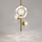 Oferowany żyrandol nowoczesny Miracle wykonany został z transparentnego szkła oraz metalu w klasycznym mosiężnym odcieniu. Model wyposażony jest w prosty stelaż oraz trzy klosze o nieregularnej formie. Pionowa lampa sufitowa Miracle z dekoracyjnymi kloszami pasuje nie tylko do aranżacji nowoczesnych, ale również glamour i eklektycznych.