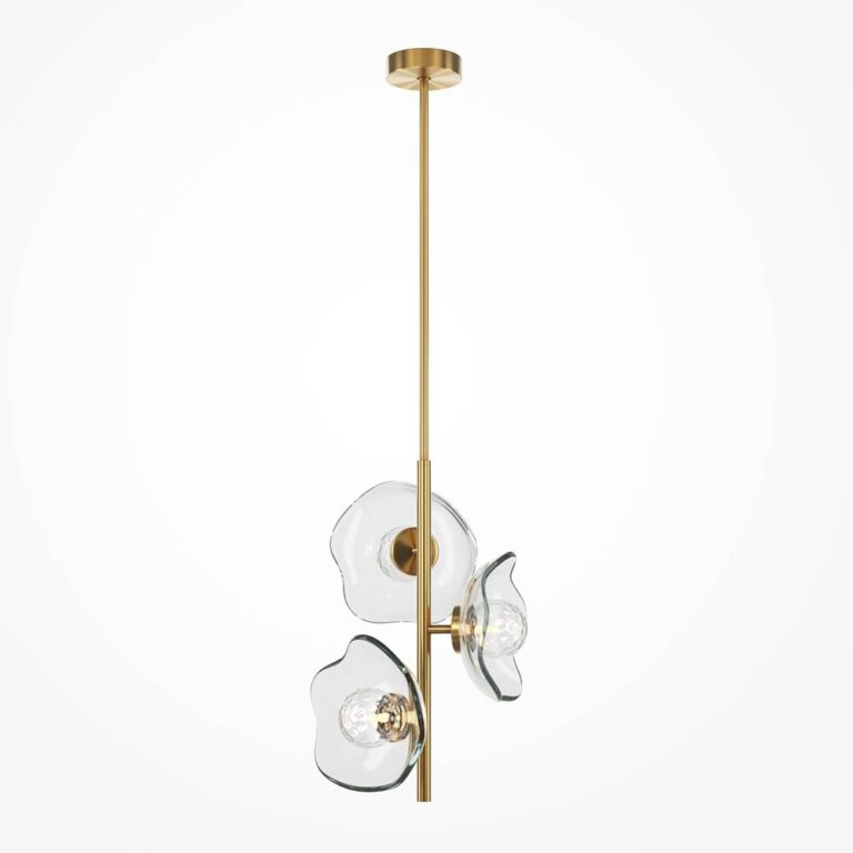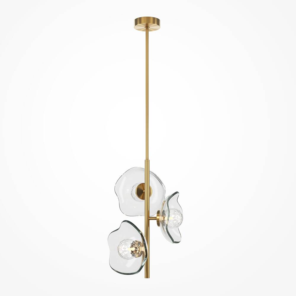 Oferowany żyrandol nowoczesny Miracle wykonany został z transparentnego szkła oraz metalu w klasycznym mosiężnym odcieniu. Model wyposażony jest w prosty stelaż oraz trzy klosze o nieregularnej formie. Pionowa lampa sufitowa Miracle z dekoracyjnymi kloszami pasuje nie tylko do aranżacji nowoczesnych, ale również glamour i eklektycznych.