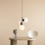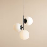 Metalowy pionowy stelaż i trzy źródła światła zamknięte w kulistych kloszach ze szkła – ten prosty design sprawia, że lampa wisząca do biura Flott M doskonale pasuje do nowoczesnych aranżacji, z którymi współgra również pod względem koloru. Pionowa lampa wisząca Flott M to zestawienie dwóch kontrastowych barw: czerni i bieli. Polecane oświetlenie sięga tym samym do klasyki i pozwala zestawiać się z wyposażeniem wnętrza w każdym kolorze.