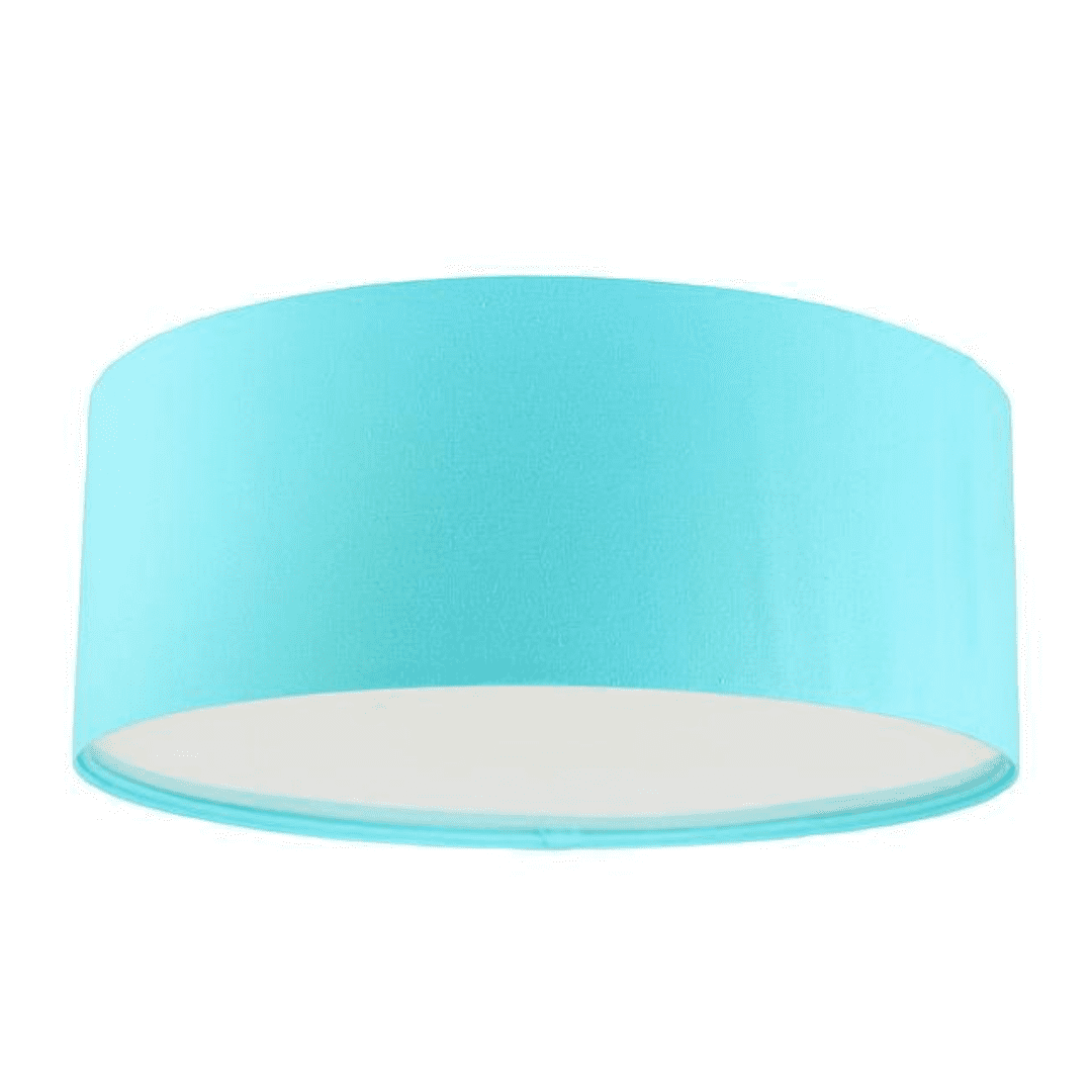 Dziecięca lampa sufitowa Tori ma prostą formę z klasycznym abażurem, który pokryty jest miłą w dotyku welurową tkaniną w kolorze jasno turkusowym. Nie jest to typowy dla dziecięcych pokoi kolorowy i wzorzysty element, jest to jednak dobre rozwiązanie jeśli chcemy dziecku zapewnić atmosferę skupienia i spokoju, której nieraz bardzo potrzebuje. Choć kolor jest dość intensywny, to jednak plafon z abażurem bez dodatkowych wzorków nie jest przedmiotem rozpraszającym.