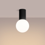 Nie tylko funkcjonalność, ale i stylowy design! Plafon Globia do łazienki składa się z dwóch głównych elementów, które razem tworzą harmonijną całość: białego klosza w formie kuli o gładkim wykończeniu oraz czarnego ryflowanego stelaża wykonanego z wysokiej jakości aluminium. Oprawa ujmuje kontrastami, które znajdziesz pod postacią kolorystyki oraz zróżnicowanych powierzchni.