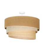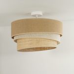 Model składa się z trzech nachodzących na siebie kloszy, dzięki czemu całość przyciąga uwagę i nadaje przestrzeni wyjątkowości. Plafon sufitowy z potrójnym abażurem Yute Trio utrzymany jest w jasnej i ciepłej kolorystyce, idealnej do wszystkich aranżacji nawiązujących do świata natury – to między innymi doskonała lampa do wnętrz boho, skandynawskich i rustykalnych.