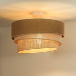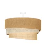 Potrójny plafon Yute Trio ma średnicą 60 cm, dzięki czemu doskonale prezentuje się w większych pomieszczeniach – możesz wykorzystać go na przykład jako lampa do salonu boho lub zamontować nad dużym stołem w jadalni. Plafon sufitowy z potrójnym abażurem Yute Trio przystosowany jest do trzech żarówek, co sprawia, że skutecznie rozjaśnia przestrzeń. Dzięki abażurom, emitowane światło jest przyjemne w odbiorze.