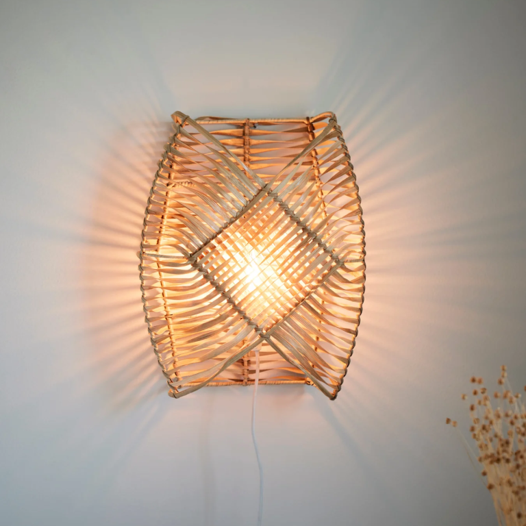 Pleciona lampa ścienna Zyla wykonana z rattanu