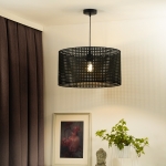 Pleciona lampa wisząca Roller Rattan w czarnym kolorze