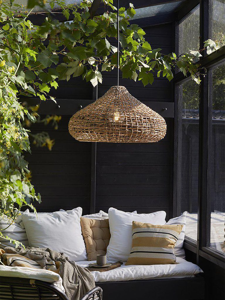 Duża lampa wisząca Mira Natural z plecionym abażurem