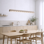 Biała lampa wisząca na listwie Enkel 3 L nad wyspę kuchenną