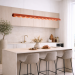 Biała lampa wisząca na listwie Enkel 3 L nad wyspę kuchenną