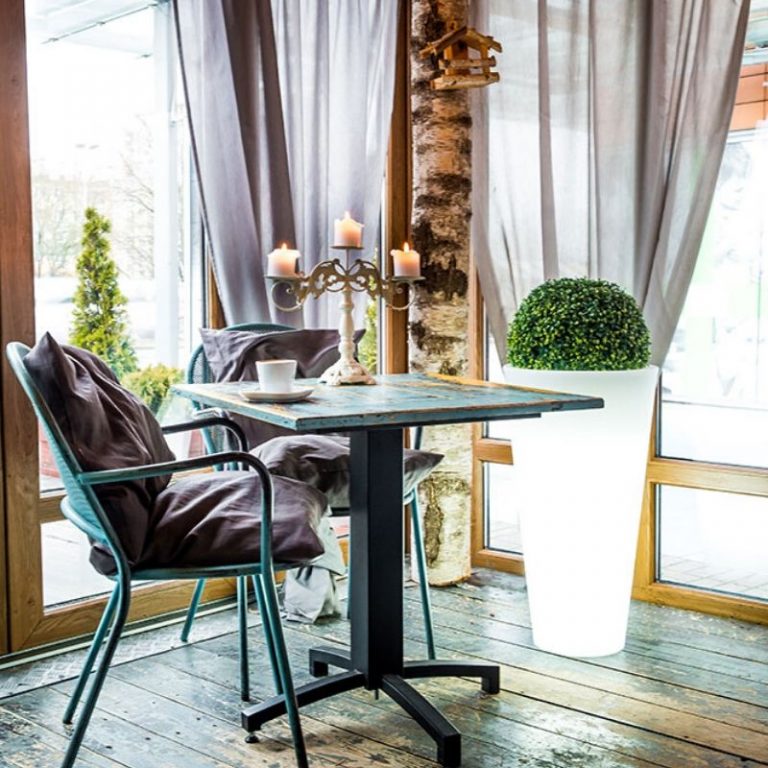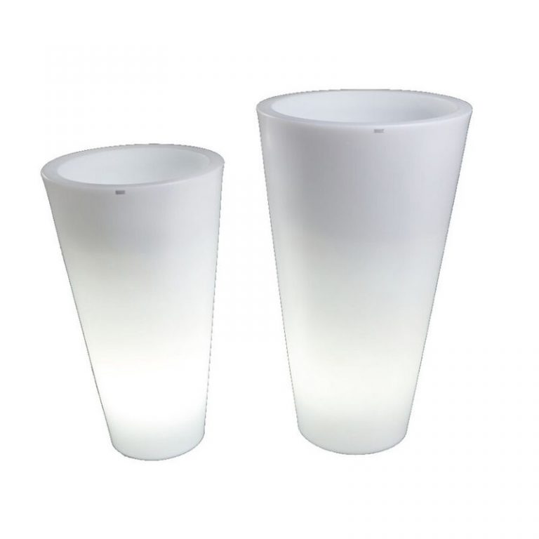 Podświetlana donica Azalea, to doskonała propozycja dla osób chcących wzbogacić swoje wnętrze o nietuzinkowe dekoracje. Donica nada niezwykłego charakteru w ogrodzie, stworzy przytulny klimat na tarasie lub w patio. Donica jest koloru mlecznej bieli, dostępna w dwóch wysokościach 75 cm i 90 cm. Donica podświetlona została zimnym światłem LED. Klient ma także możliwość wyboru przewodu. Biały przewód z włącznikiem nadaje się tylko i wyłącznie do wnętrz. Na zewnątrz należy wybrać czarny, uziemiony przewód.