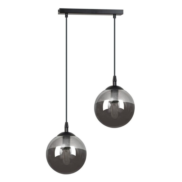 Grafitowe, połyskujące klosze ze szkła zmieniają nieco barwę światła, dlatego podwójna lampa Blair 2 tworzy wyjątkowo nastrojową atmosferę. Model ten idealne sprawdza się w roli świetlnej dekoracji, w którą możesz wyposażyć, na przykład, swój salon. Ciemna kolorystyka całości przykuwa uwagę, inspiruje i doskonale zestawia się z innymi elementami wnętrz industrialnych i loftowych.
