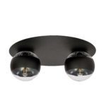 Wśród zalet lampy na sufit do salonu Manx 2 warto wymienić jej prostą, nowoczesną budowę. Oferowany model wyposażony jest w płaską podsufitkę, wykonaną ze stali polakierowanej na czarno. Stelaż ten to solidna podstawa dla dwóch kulistych kloszy z transparentnego szkła. Każda z kul dodatkowo ozdobiona jest czarnym paskiem, który biegnie dookoła klosza. W ten sposób powstała wyjątkowo designerska orawa świetlna, w której każdy element idealnie do siebie pasuje. Co do budowy jeszcze, wielkość podwójnej lampy sufitowej Manx 2 pozwala na wykorzystanie jej w niemal każdym pomieszczeniu, niezależnie od jego metrażu. Każdy klosz ma średnicę 14 cm, całość oświetlenia ma wysokość 19 cm oraz szerokość 43 cm.