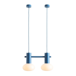 Podwójna, niebieska lampa wisząca z opalowymi kloszami Flo 2 Sky