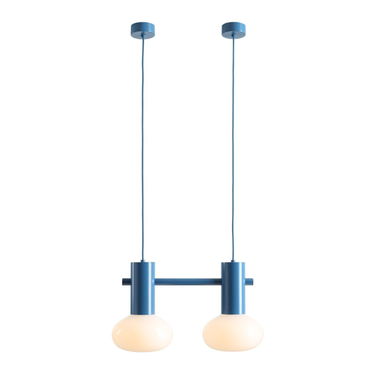 Podwójna, niebieska lampa wisząca z opalowymi kloszami Flo 2 Sky