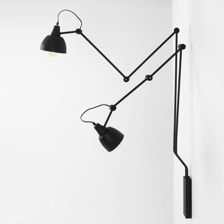 Podwójny kinkiet ścienny Boe Dubla wykonany został z metalu, sprawdzonego materiału, który idealnie nadaje się do produkcji oświetlenia przegubowego. Funkcjonalność, solidność i wytrzymałość, to jednak nie wszystko, co charakteryzuje ten model. Lampa z metalu, to również niepowtarzalny styl! Nowoczesny design dodatkowo podkreśla czarna kolorystyka. W zależności od efektu, jaki chcesz osiągnąć, wybrać możesz zarówno klosze z czarnym, jak i złotym wnętrzem.