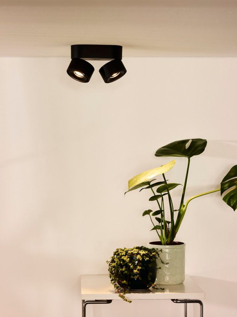 Doskonały design – tymi dwoma słowami można opisać oprawę Yumiko 2. Lampa sufitowa zachwyca niecodzienny wyglądem i praktycznymi funkcjami. Podwójny spot sufitowy Yumiko 2 w czarnym kolorze charakteryzuje się prostą, minimalistyczną formą, którą dopełniono ponadczasową czarną barwą. Oferowany model perfekcyjnie pasować będzie do pomieszczeń w stylach industrialnym, loftowym lub nowoczesnym. To designerskie oświetlenie rewelacyjnie współgra z mocno kontrastującymi barwami, drewnianymi lub metalowymi elementami dekoracyjnymi oraz z soczystą zielenią roślin ozdobnych.