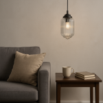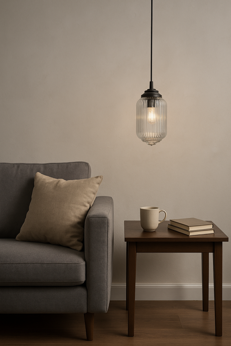 Szklana lampa wisząca to nasza propozycja do wnętrz nowoczesnych i industrialnych. Surowe, grube szkło świetnie pasować będzie do prostych i geometrycznych kształtów, a także ciemnych i chłodnych barw. Ten pojedynczy zwis doskonale wkomponuje się w scenerię z dodatkiem innych elementów szklanych, a także akcentów z metalu i drewna.
