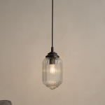 Nowoczesna lampa wisząca ze szklanym kloszem będzie dobrym wyborem, jeśli potrzebujesz prostego oświetlenia sufitowego nad kuchenną wyspę czy barek. Lampa przyciąga wzrok za sprawą charakterystycznego, szklanego klosza, który zwieńczony jest delikatnym szpicem oraz ma delikatne i podłużne zdobienia. Czy wiesz, że taka faktura klosza jest nie tylko fantastycznym elementem dekoracyjnym, ale również współgra ze światłem i sprawia, że całkiem inaczej rozchodzi się ono w pomieszczeniu? Jesteśmy fanami lamp sufitowych z kloszem wykonanym z takiego grubego szkła!