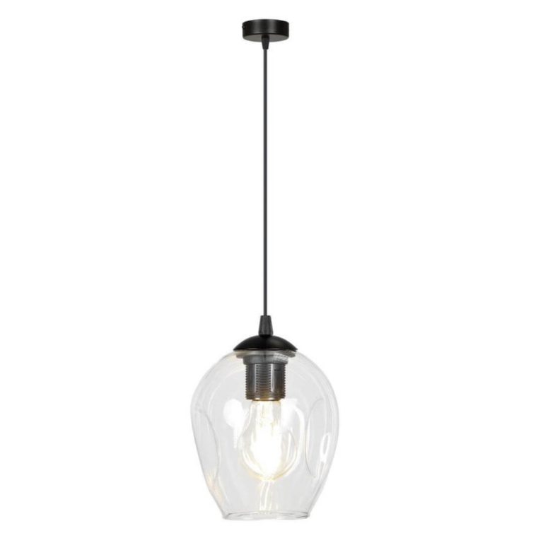 Jednym z najbardziej charakterystycznych elementów całej lampy do salonu Ava jest bez wątpienia nietypowy klosz, wykonany w całości z transparentnego szkła, przez które widoczne jest bezpośrednie źródło światła. To niezwykle stylowe rozwiązanie nawiązuje do bardzo modnego obecnie stylu industrialnego, w którym uwydatnia się elementy techniczne. Klosz ma kielichowy kształt, który w najszerszym miejscu ma 14 cm, natomiast jego wysokość wynosi 17 cm.
