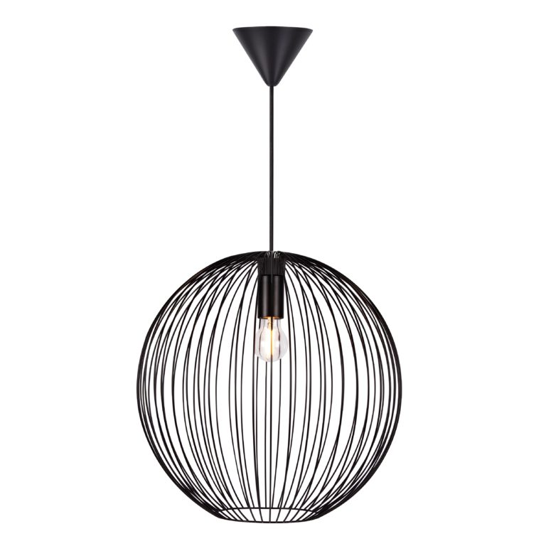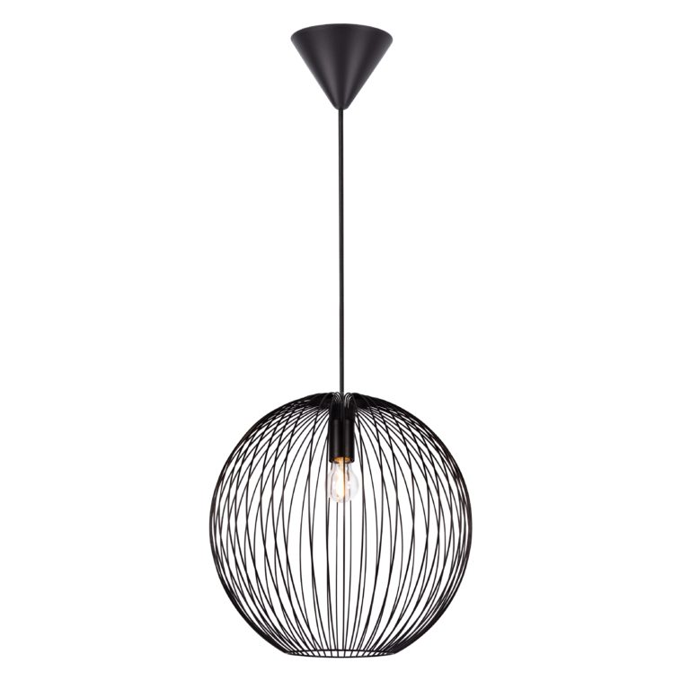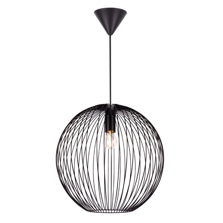 Pojedyncza lampa wisząca Beroni z dużym drucianym kloszem