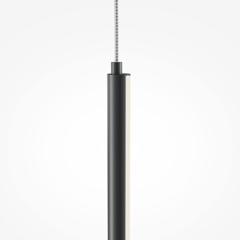Pojedyncza lampa wisząca Halo w czarnym kolorze ze sklepu internetowego Ryssa składa się jedynie z podsufitki, zawieszenia oraz klosza, który wyróżnia się podłużną wąską formą. Szerokość lampy czarnej Halo wynosi tylko 1,7 cm! Model posiada dwie wersje, które różnią się od siebie wysokością klosza oraz całej oprawy.