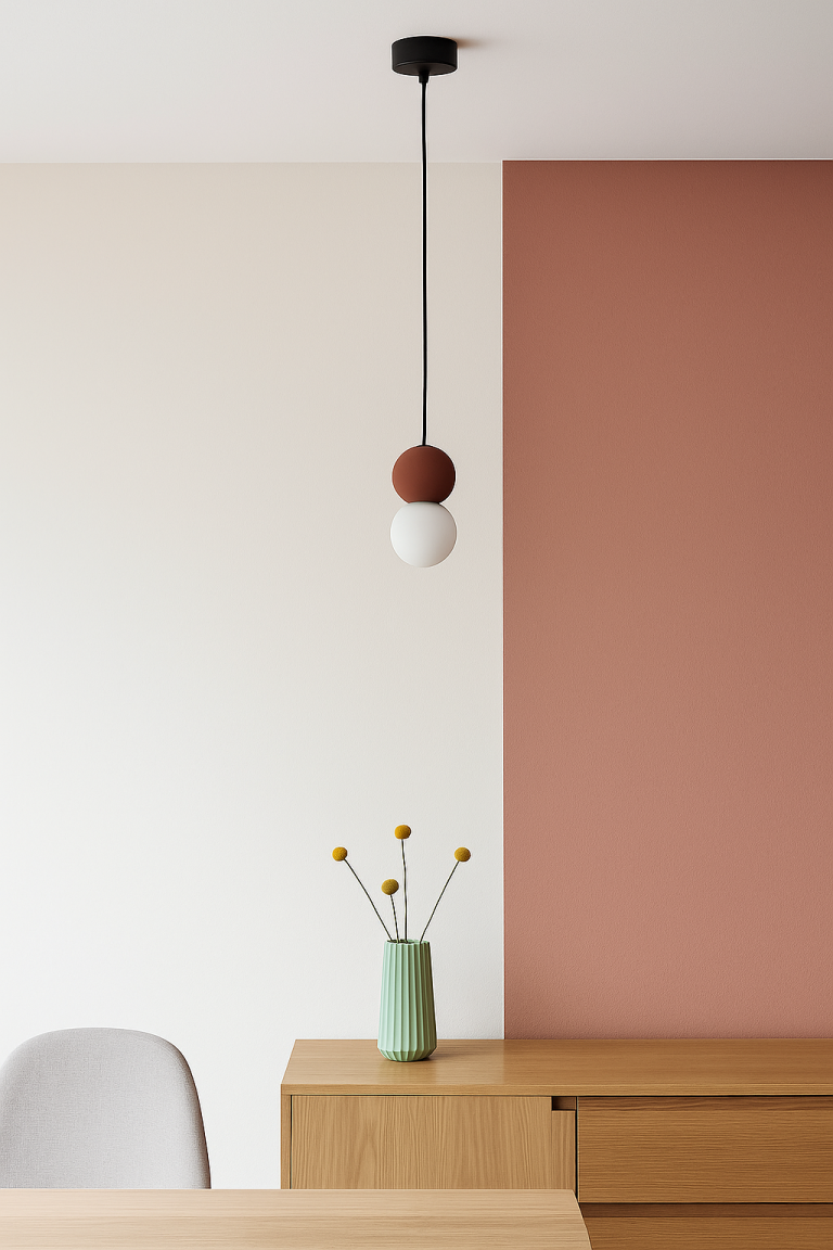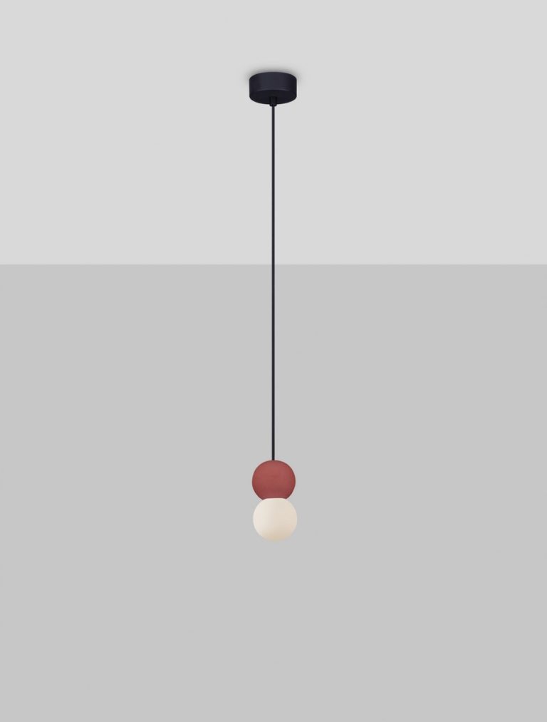 Pojedyncza lampa wisząca Ibague A na okrągłej podsufitce wyposażona jest w klosz z dwoma kulami, które nadają całości nowoczesnego i eleganckiego wyglądu. Jedna z nich utrzymana jest w unikatowej czerwonej kolorystyce, która ociepla wizualnie przestrzeń, ale i dodaje aranżacji charakteru. Lampa pojedyncza Ibague A doskonale odnajdzie się zarówno wystroju typowo nowoczesnym i minimalistycznym, jak i we wnętrzach loftowych, czy industrialnych. Koniecznie dopasuj do niej również inne czerwone elementy wyposażenia, aby nadać aranżacji estetycznej spójności.