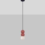 Kule z betonu w czerwonym kolorze sprawiają, że pojedyncza lampa wisząca Ibague B na czarnym stelażu przyciąga do siebie uwagę, natomiast geometryczna forma poszczególnych elementów nadaje jej subtelnej elegancji w nowoczesnym stylu. Lampa wisząca pojedyncza Ibague B wyposażona jest również w kulisty biały klosz, który rozpraszając światło, doskonale rozjaśnia wybrane miejsce.