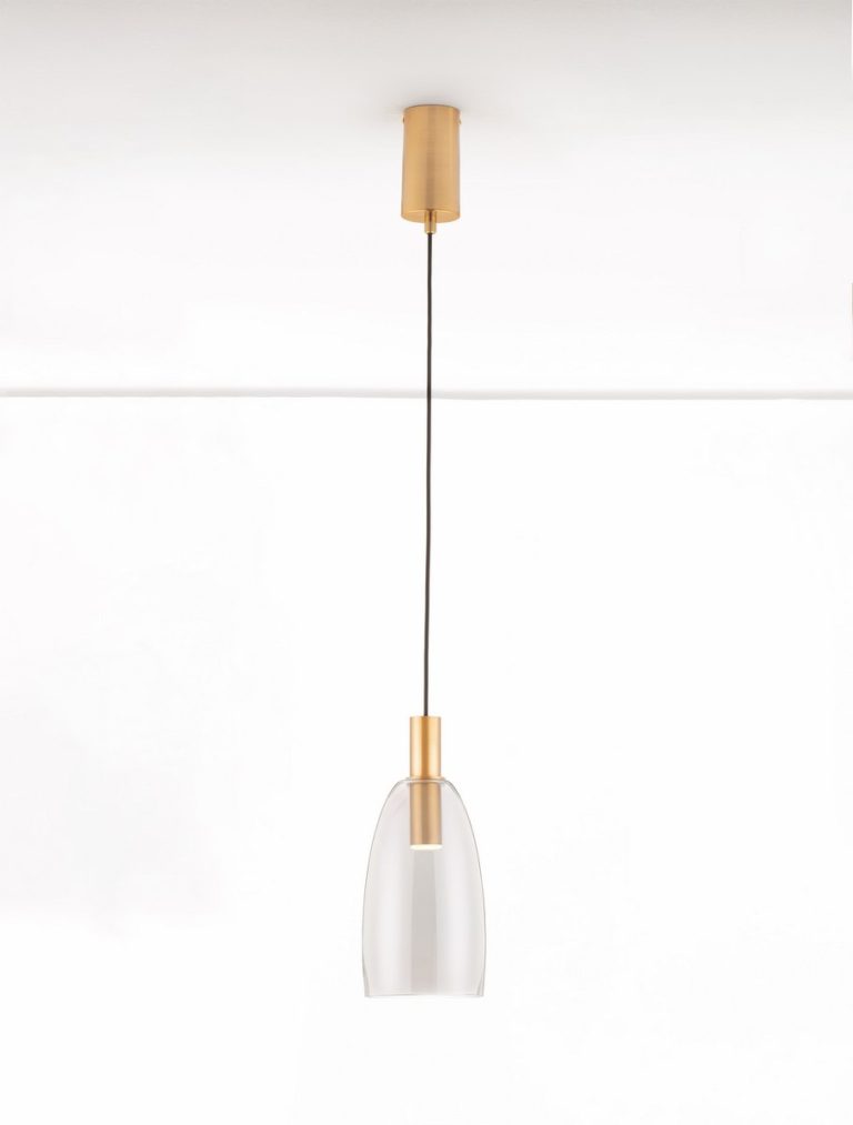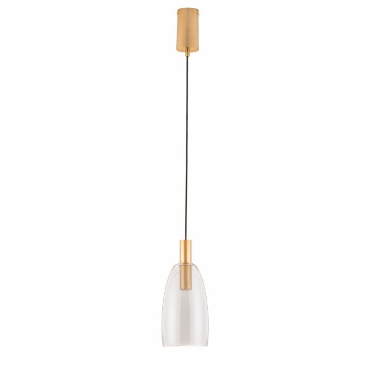 Pojedyncza lampa wisząca Iquitos C na złotym stelażu z metalu wyposażona jest w klosz w kształcie wąskiej kopuły, który wykonany został z wysokiej jakości szkła w przydymionym odcieniu – całość prezentuje się dekoracyjnie, a jednocześnie nadal urzeka minimalizmem. Lampa wisząca szklana Iquitos C doskonale pasuje do wszystkich nowoczesnych aranżacji, a także do wnętrz inspirowanych stylem loftowym. Warto zestawić ją z innymi dodatkami dodatkami w tej samej kolorystyce – na przykład z lustrem w złotej ramie.
