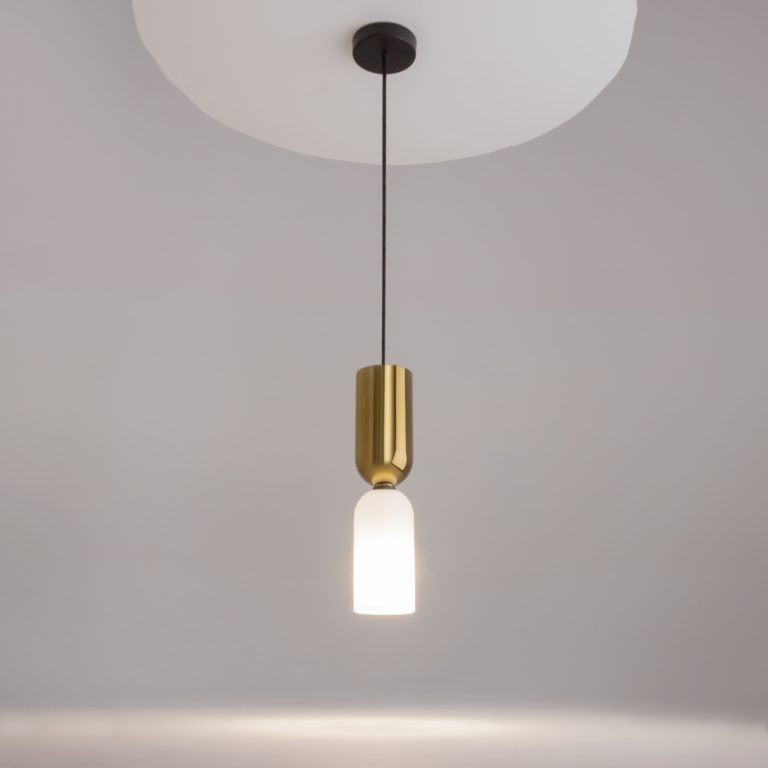 Pojedyncza lampa wisząca Memory na czarnym stelażu