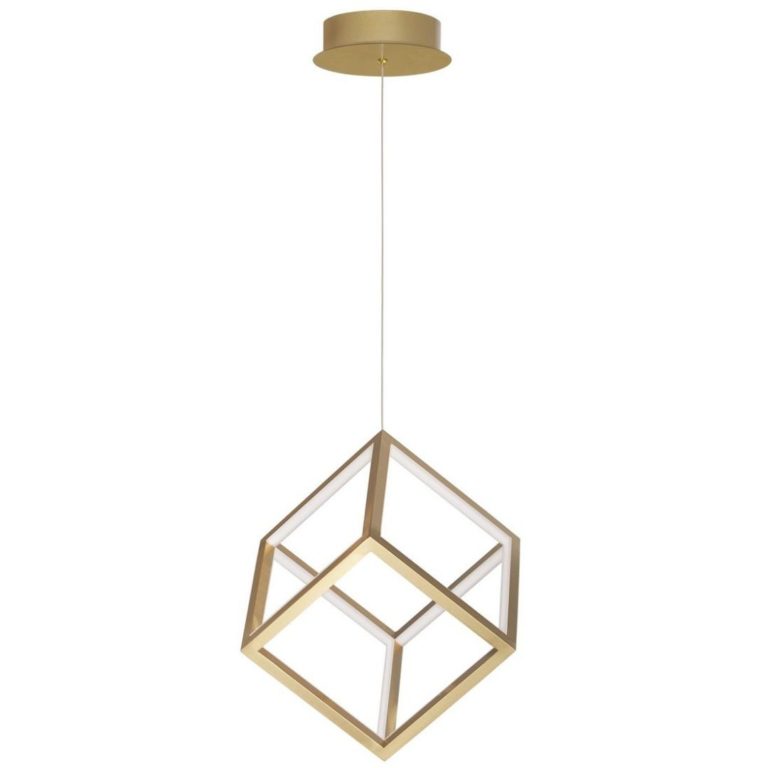 Geometryczny zwis do kuchni Reus wykonany został z aluminium i szkła, a funkcję źródła światła pełni wbudowany panel LED o ciepłej temperaturze barwowej 3000 K. Cały model wyróżnia się wyjątkowo elegancką i klasyczną, złotą kolorystyką, która doskonale współgra z nowoczesnymi aranżacjami. Pojedyncza lampa wisząca Reus z kwadratowym kloszem z metalu znakomicie prezentuje się solo, jak i w grupie kilku tych samych opraw.