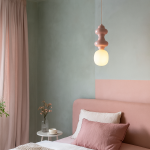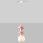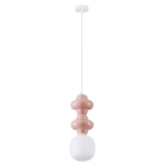 Pojedyncza lampa wisząca Vilrosa B na białym stelażu wyposażona jest w designerski klosz z białego szkła i różowej ceramiki, który jest najbardziej dekoracyjnym elementem całości. Lampa pojedyncza Vilrosa B wyróżnia się także oryginalną formą, która nadaje jej lekkości, a wraz z kolorystyką również subtelnego uroku.