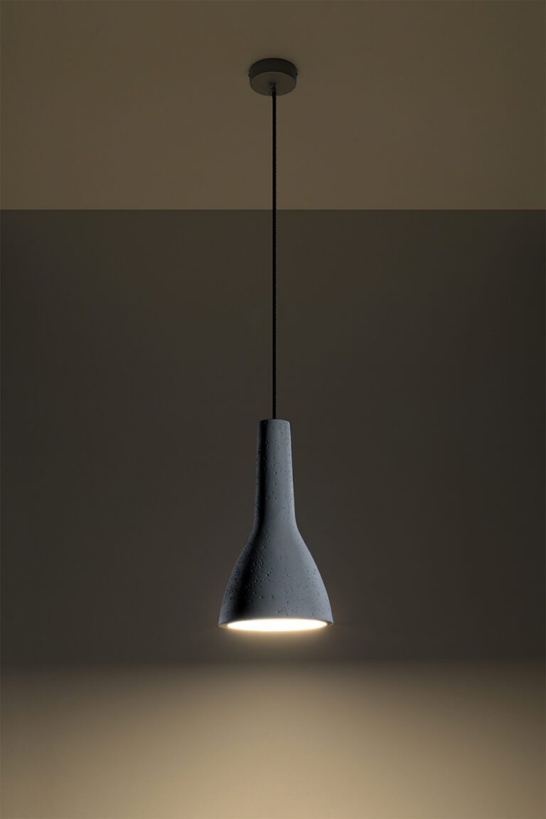 Materiał jakim jest beton, bezsprzecznie kojarzy się z surowością, dużym ciężarem i szarym kolorem. Równocześnie, utożsamiamy go z solidnością, wytrzymałością i mocą. Pojedyncza lampa wisząca z betonowym kloszem Dina zaskakuje i inspiruje. Model ten, to niecodzienne połączenie różnych materiałów, które stworzyły razem niepowtarzalny efekt.