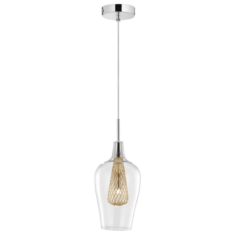 Wyposażona w przezroczyste, złote i chromowane elementy, lampa wisząca do kuchni i jadalni Zarza A charakteryzuje się elegancją, która sprawi, że Twoja aranżacja również nabierze stylu. Oferowana oprawa ma wysokość 120 cm, którą możesz jednak regulować, przystosowując oświetlenie do wnętrza. Pojedyncza lampa wisząca Zarza A ze złotym detalem pasuje do aranżacji nowoczesnych, ale też loftowych i industrialnych.