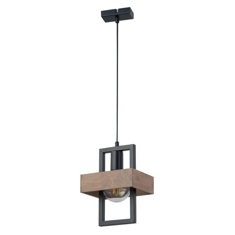 Style industrialny i loftowy wręcz “uwielbiają” połączenia klasycznych materiałów. W przypadku lampy wiszącej Noemi, zestawienie metalu i sklejki prezentuje się wspaniale. Z dyskretnej podsufitki opuszczony został na przewodzie czarny, metalowy stelaż, którego zwieńczeniem jest opaska ze sklejki w kolorze czekoladowym. Całość prezentuje się niezwykle zjawiskowo. Lampa sufitowa Noemi szczególnie dobrze wygląda z dekoracyjnymi żarówkami edisona.