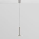 Lampa wisząca do biura Esquel wykonana została z metalu w srebrnym kolorze, który nadaje dodaje całej oprawie wyjątkowej elegancji. Model wyposażony jest w nietypowy klosz w kształcie tuby zakończonej dodatkowym okrągłym detalem. Pojedynczy zwis o satynowym wykończeniu Esquel ma wysokość 160 cm oraz średnicę 15 cm, dlatego sprawdzi się nawet w bardzo wysokich wnętrzach. Oświetlenie LED lampy Esquel emituje światło o ciepłej temperaturze barwowej.