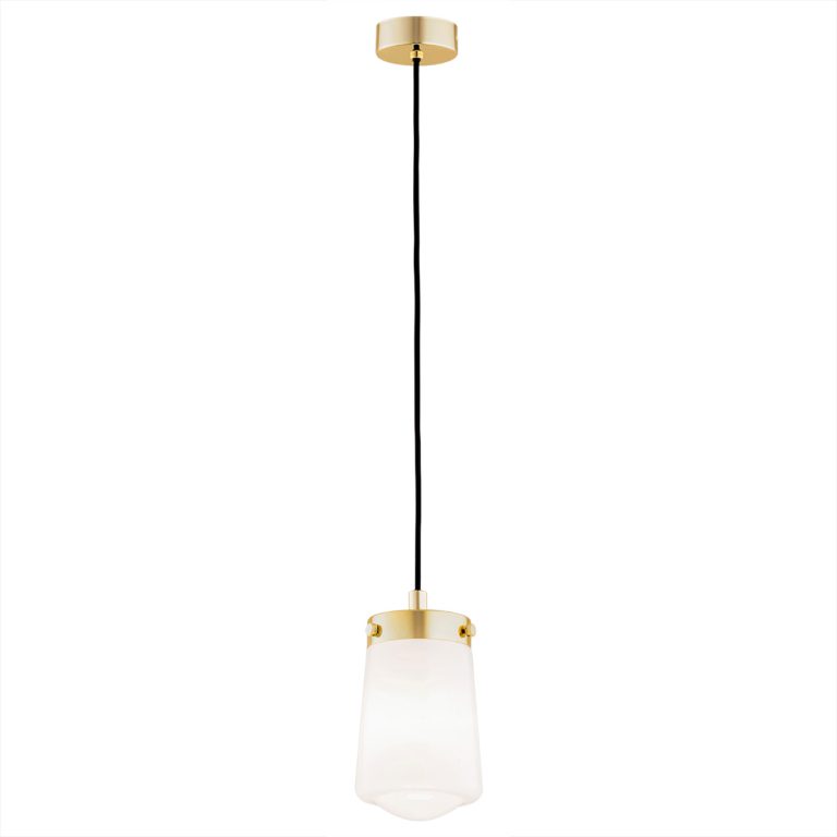 Jednopunktowe lampy wiszące doskonale sprawdzają się jako oświetlenie nad wyspę kuchenną, ale także jako stylowa oprawa świetlna w salonie, zamontowana na przykład obok kanapy lub fotela. Jedną z tego rodzaju propozycji jest pojedynczy zwis Pasadena z dodatkami w kolorze mosiądzu, które nadają jej wyjątkowej elegancji.