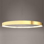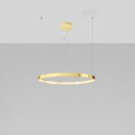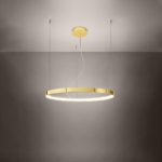 Oferowana lampa pierścieniowa Rio LED posiada już wbudowane oświetlenie, dzięki czemu nie musisz się martwić wyborem odpowiedniego źródła światła! Ledowy panel świetlny to również energooszczędność! Połyskujący żyrandol Rio LED w złotym kolorze posiada także możliwość regulacji długości linek mocujących, co pozwoli Ci w prosty sposób dopasować lampę do wnętrza i własnych upodobań.