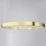 Połyskujący żyrandol Rio LED w złotym kolorze zwraca na siebie uwagę już przy pierwszej chwili! Model wyposażony jest w nietypowy klosz o kształcie pierścienia, który wykonany został z wysokiej jakości metalu. Złota lampa wisząca Rio LED doskonale pasuje do wszystkich nowoczesnych aranżacji, również tych, które łączą minimalizm z przepychem stylu glamour. Oprawa świetnie prezentuje się na tle jasno urządzonych wnętrz. Dzięki klasycznej kolorystyce, żyrandol nowoczesny Rio LED możesz jednak także wkomponować w zupełnie inny wystrój!