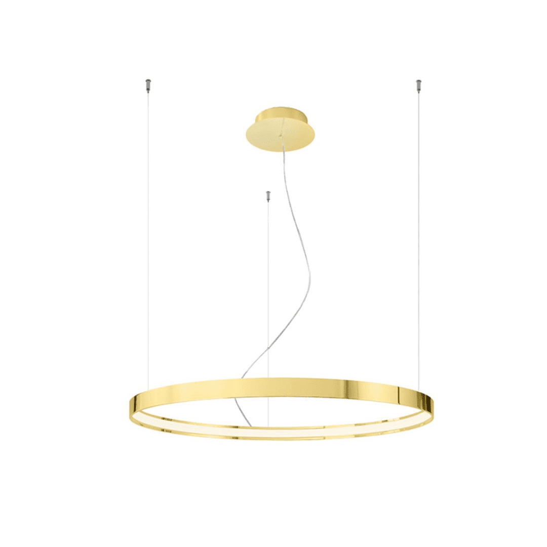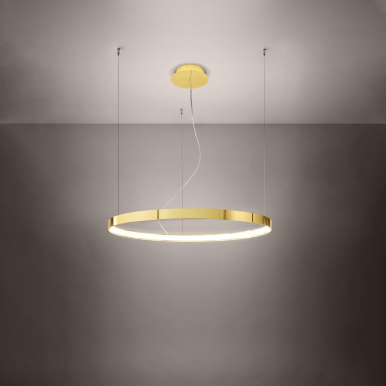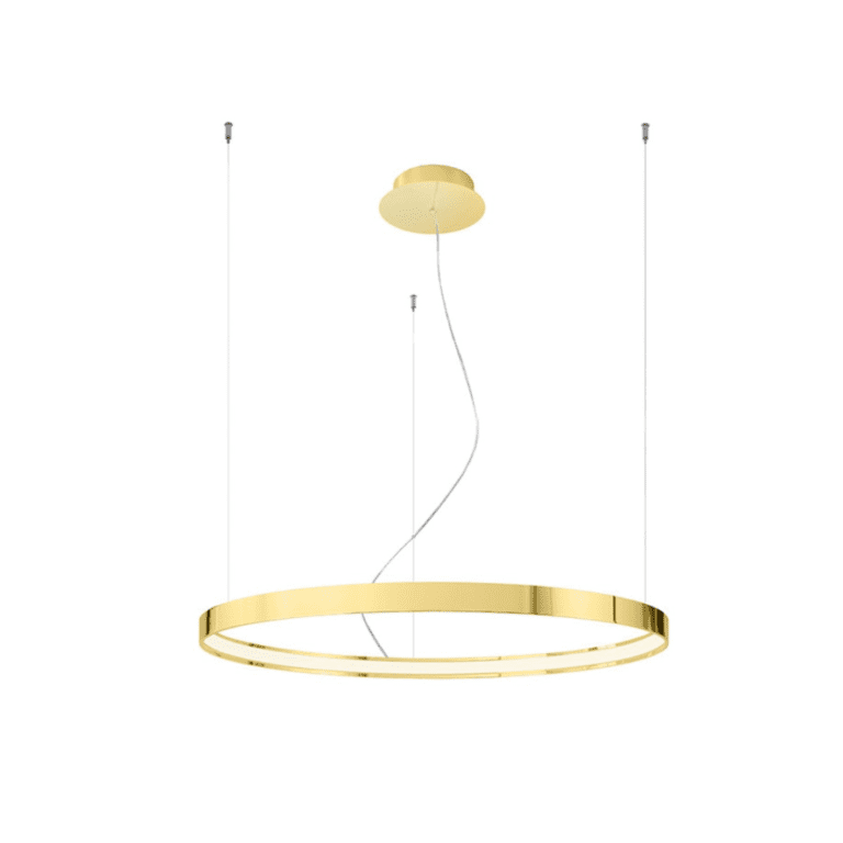 Połyskujący żyrandol Rio LED w złotym kolorze zwraca na siebie uwagę już przy pierwszej chwili! Model wyposażony jest w nietypowy klosz o kształcie pierścienia, który wykonany został z wysokiej jakości metalu. Złota lampa wisząca Rio LED doskonale pasuje do wszystkich nowoczesnych aranżacji, również tych, które łączą minimalizm z przepychem stylu glamour. Oprawa świetnie prezentuje się na tle jasno urządzonych wnętrz. Dzięki klasycznej kolorystyce, żyrandol nowoczesny Rio LED możesz jednak także wkomponować w zupełnie inny wystrój!