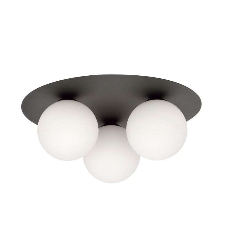Lampa sufitowa z oferty sklepu internetowego Ryssa wykonana została z dbałością o szczegóły oraz wyłącznie z dobrych jakościowo materiałów. Na jej solidność i modny design składa się okrągła podsufitka z metalu w kolorze czarnym oraz trzy źródła światła w osłonie białych kloszy ze szkła. To kontrastowe połączenie kolorów i materiałów sprawia, że oferowany model charakteryzuje się zarówno uniwersalnością, jak i ponadczasową stylowością.