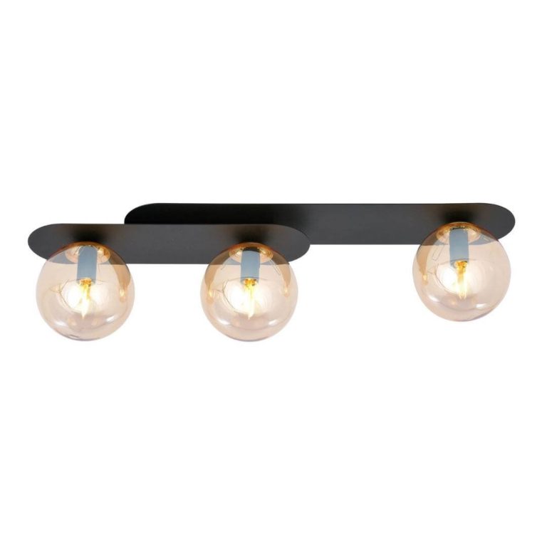Miodowe klosze idealnie prezentują się na tle dwóch nachodzących na siebie podsufitkach. Te z kolei wykonane są z odpornego na uszkodzenia metalu, który daje solidne oparcie dla całej konstrukcji. Potrójna lampa na sufit Rahim 3 zarówno kolorystyką, jak i użytymi materiałami nawiązuje do stylu industrialnego. Jednak jest to również propozycja, która bardzo dobrze pasuje do zupełnie odmiennych trendów – do stylistyki nowoczesnej, czy nawet glamour.