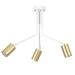 Oto przed Tobą potrójna lampa sufitowa Hazel 3 z nutą stylu glamour. Jest po prostu genialna: łączy w sobie prostą formę z gustownymi, ale nienachalnymi zdobieniami w postaci wysokich na dziesięć centymetrów reflektorów w złotym odcieniu. Może zatem z powodzeniem wystąpić w nowocześnie urządzonej przestrzeni, w której króluje minimalizm, w industrialnym, surowym wnętrzu, jak i w pomieszczeniu zaaranżowanym „na bogato”, czyli z o wiele większym rozmachem.