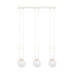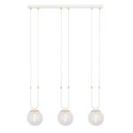 Lampa wisząca na listwie w designerskim stylu Marga 3 wykonana jest ze stali lakierowanej na biało i ozdobiona detalami w złotym kolorze. Kolorystyka ta prezentuje się niezwykle elegancko, sprawia, że aranżacja nabiera lekkości, a wnętrze przestronności. To doskonałe dodatek do wyposażenia nowoczesnego apartamentu. Potrójna lampa wisząca na listwie Marga 3 może stać się doskonałym oświetleniem niemal każdej przestrzeni Twojego domu – na przykład rozjaśniającym wyspę w kuchni, stół w jadalni lub ławę w salonie. Biała lampa wisząca ze złotymi detalami Marga 3 świetnie komponuje się z aranżacjami nowoczesnymi, loftowymi i industrialnymi.