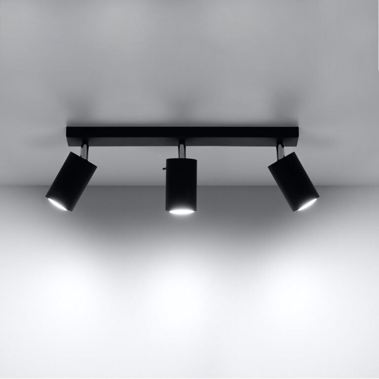 Sufitowa lampa Arte 3 w kolorze czarnym sprawdzi się w nowoczesnych biurach. Pozwoli dobrze doświetlić biurka i inne przestrzenie robocze. Tak samo jest w przypadku najczęściej używanych szafek kuchennych i łazienkowych. Reflektorki na listwie równomiernie oświetlą stół jadalniany czy miejsce do wypoczynku w salonie. Można tak wyeksponować ścianę medialną i różne elementy dekoracyjne. W sypialni jednocześnie oświetlić szafę, łóżko i toaletkę, w pokoju dziecięcym miejsce do zabawy lub nauki.
