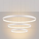 Żyrandol kremowy Rio 3 wyposażony jest w trzy klosze w kształcie pierścieni o średnicach 110, 78 i 55 cm, które układają się w harmonijną kompozycję. Potrójny żyrandol LED Rio 3 w kolorze kremowym przyciąga uwagę formą, prezentuje się lekko, dynamizuje wnętrze i nadaje przestrzeni designerskiego charakteru. To oprawa świetlna, która szczególnie dobrze prezentuje się w aranżacjach utrzymanych w stylu minimalistycznym, mogą stać się także interesującym elementem wnętrza loftowego.